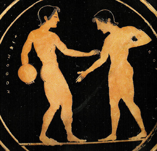 These are some images of how the athletes would have looked in ancient Olympia. They trained and competed in the nude. They could wear their hair short, as here, or a little longer. Young men, like Alexander and Hephaistion, did not wear beards, but some older athletes and most older men did.